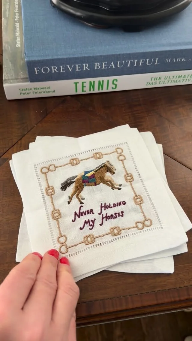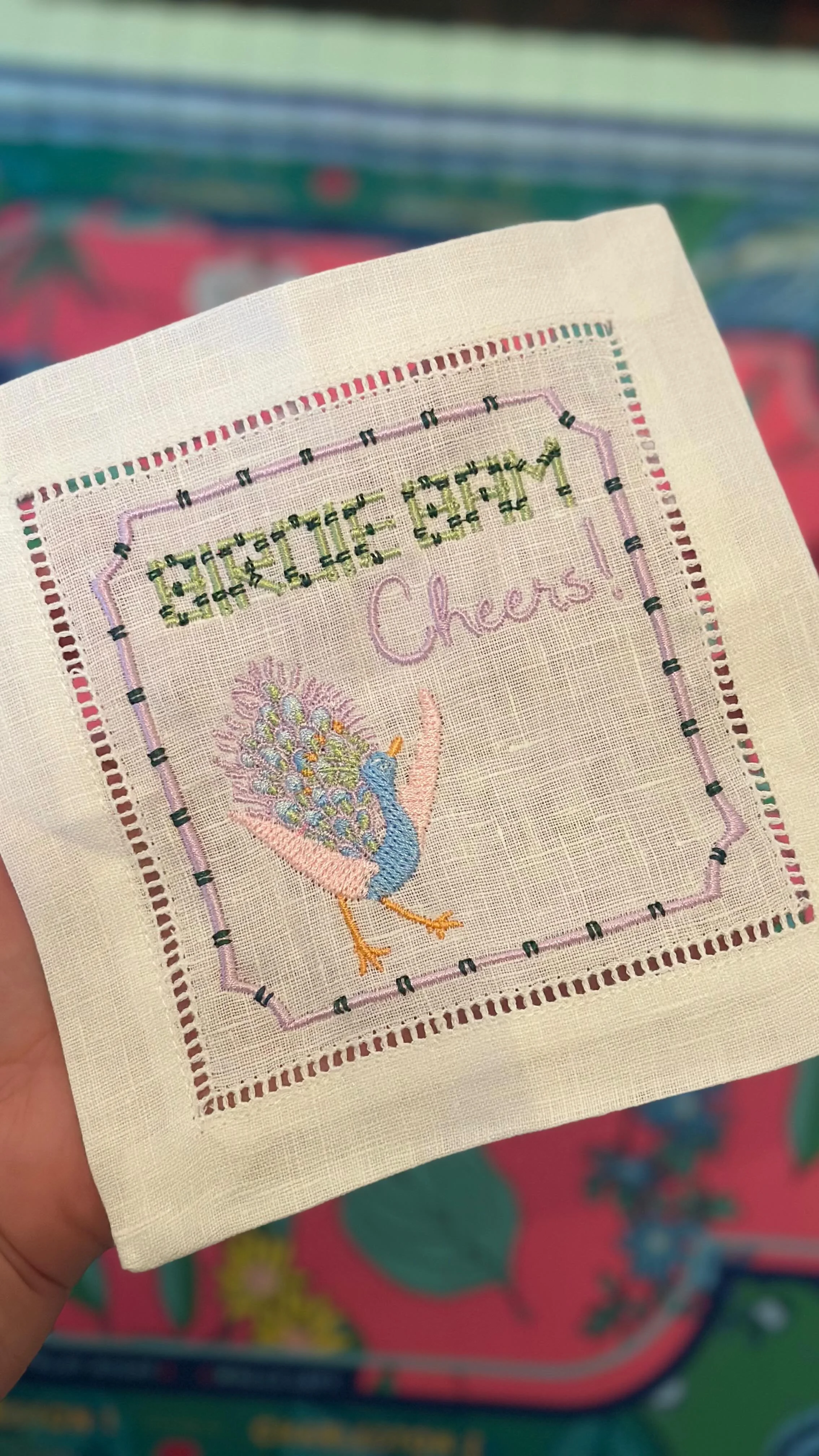 Think whimsical yet cheeky embroidered cocktail napkins with just the right hint of wit.